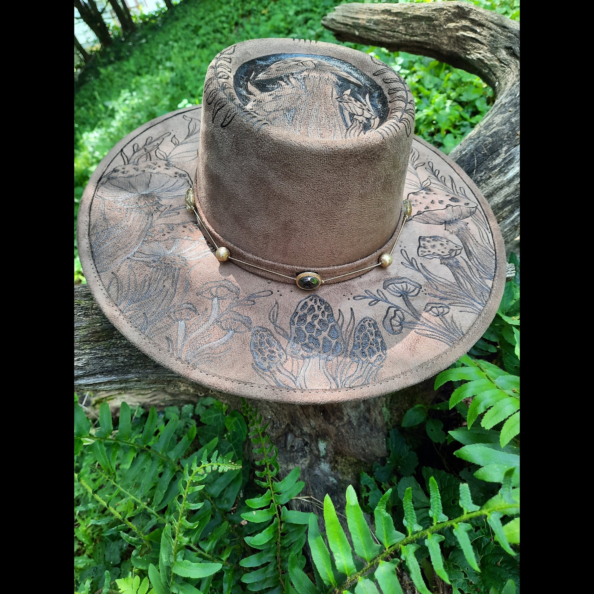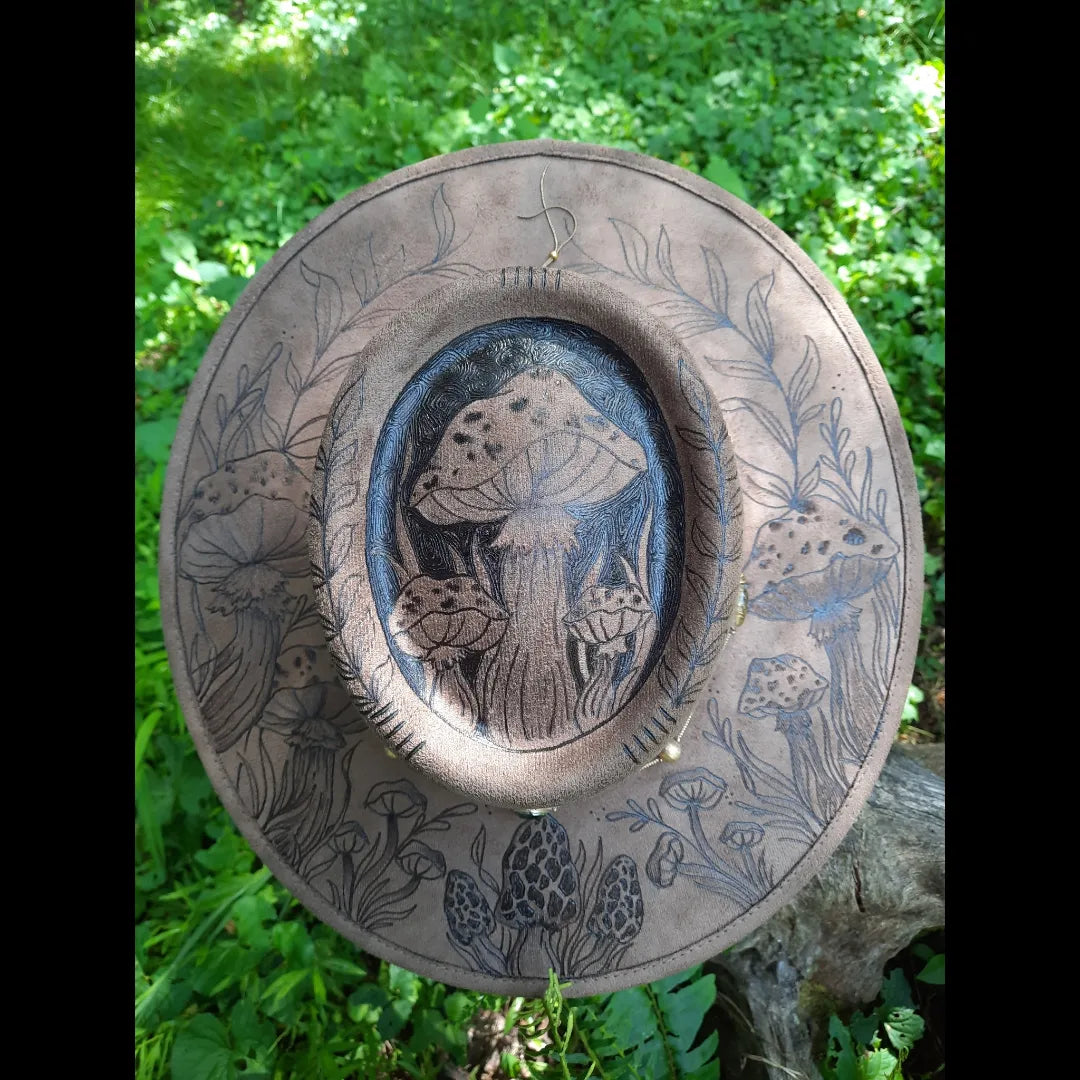 Made with care in Mexico, this medium brim hat is exquisitely crafted from vegan suede. The unique mushroom design adds a touch of nature to your style. Stay fashionable and eco-friendly with this hand-made hat.